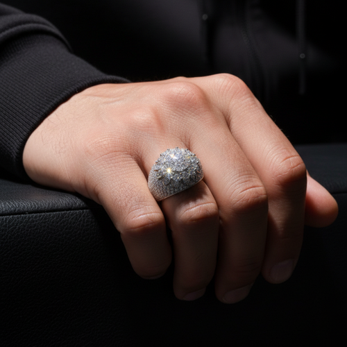 Largely Silver Men's Ring 925 Sterling Silver Iced Out Ring
